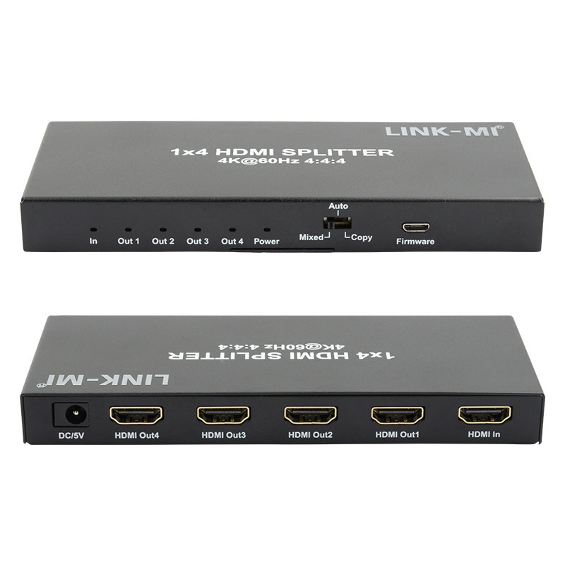 LINK-MI LM-SP06S 1X4 HDMI 2.0 Splitter can simultaneously displays an Ultra Hi-Def source on up to four Ultra HD displays. It supports resolution up to Ultra HD 4Kx2K (3840x2160@60Hz YUV 4:4:4), HDR, 3D and HDCP2.2.